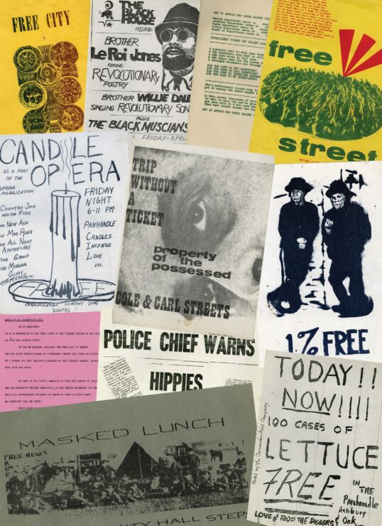 How do we uncover the arc of a social movement through its broadsides, street sheets, mimeographed leaflets, and print ephemera? In this illustrated talk, Eric Noble will explore the Digger movement of 1960s San Francisco — a radical network of free stores, free food, and free theater — through the lens of its printed traces.